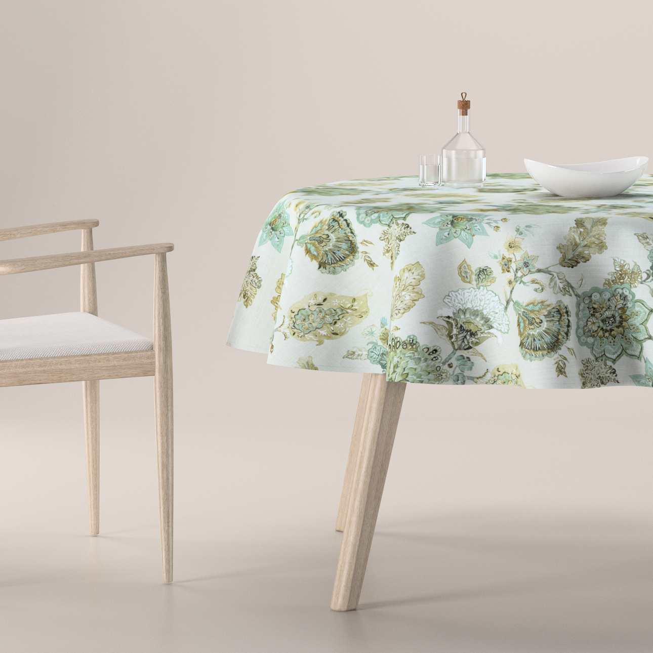 Obrus okrúhly, kvety na béžovo – sivom podklade, Flowers, 143-67