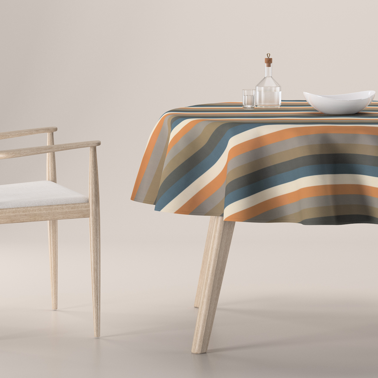 Obrus okrúhly, pásy v odtieňoch červeno-hnedo-modrých farbách, Vintage 70’s, 143-58