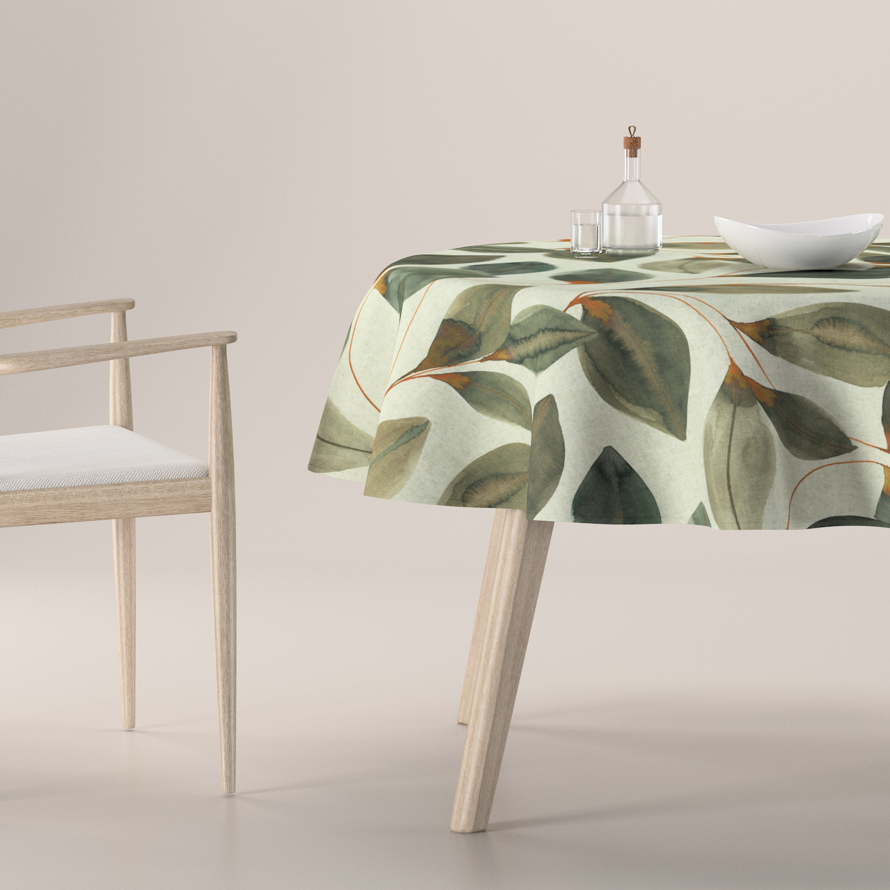 Obrus okrúhly, pomarančovo – hnedé listy na sivom plátne, Abigail, 143-17