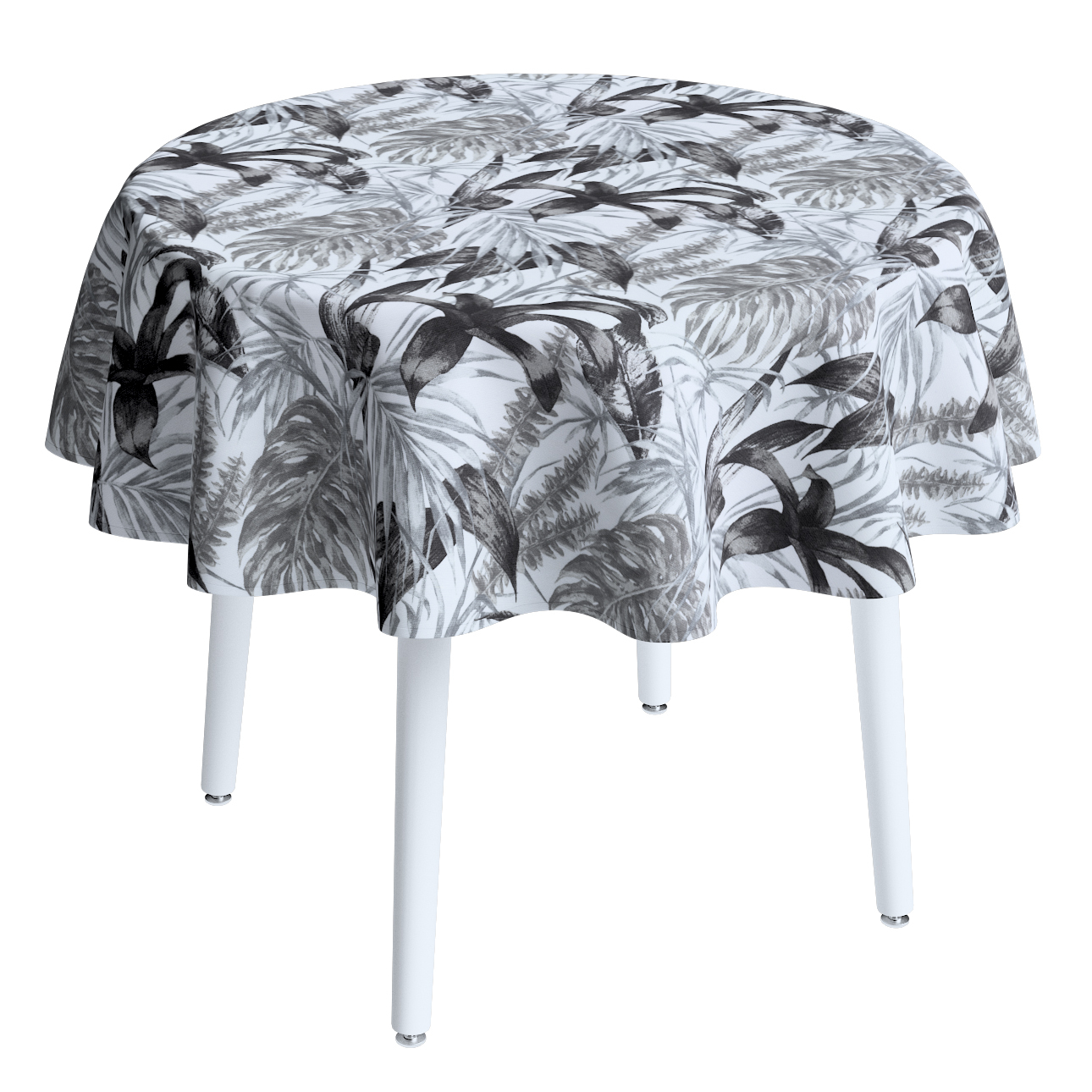 Obrus okrúhly, šedo – čierne listy na bielom pozadí, Výpredaj, 151-96