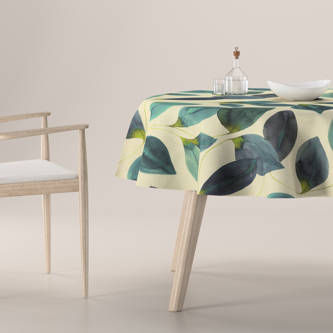 Obrus okrúhly, smaragdovo – zelené listy s fialovým nádychom na plátne, Abigail, 143-15