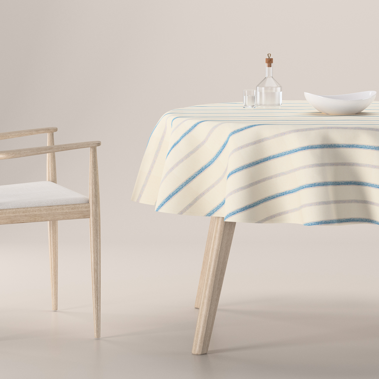 Obrus okrúhly, svetlo a tmavomodrý pásik na svetlobéžovom podklade, Avinon, 129-66