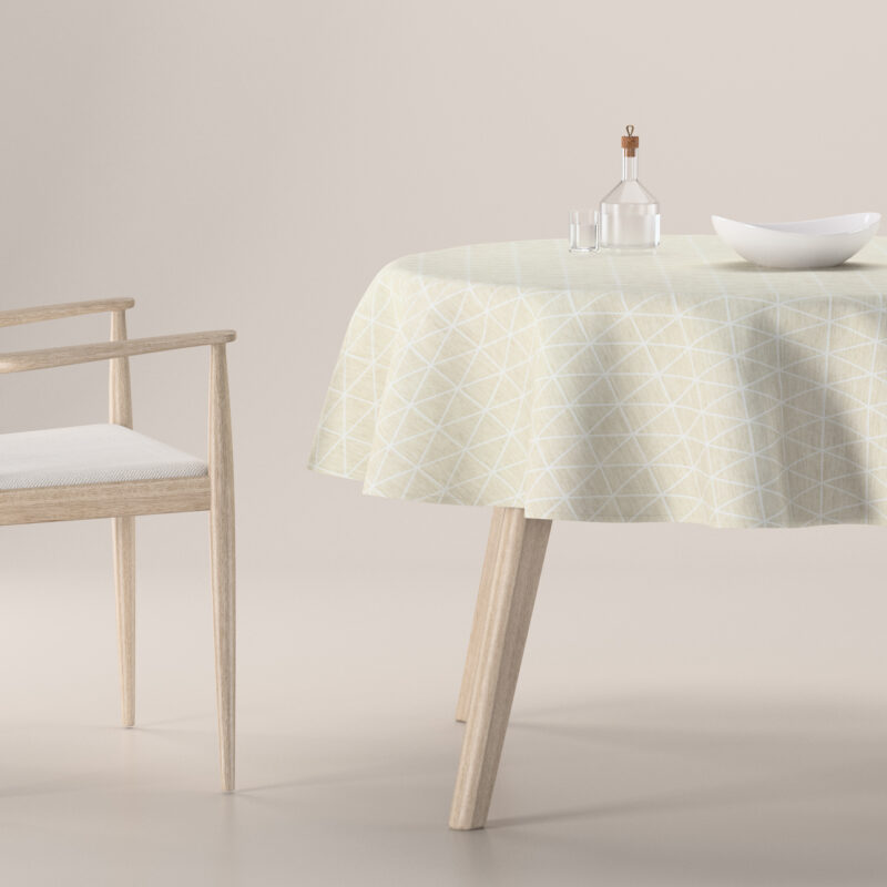 Obrus okrúhly, trojuholníky na béžovo-ľanovom podklade, Sunny, 143-49