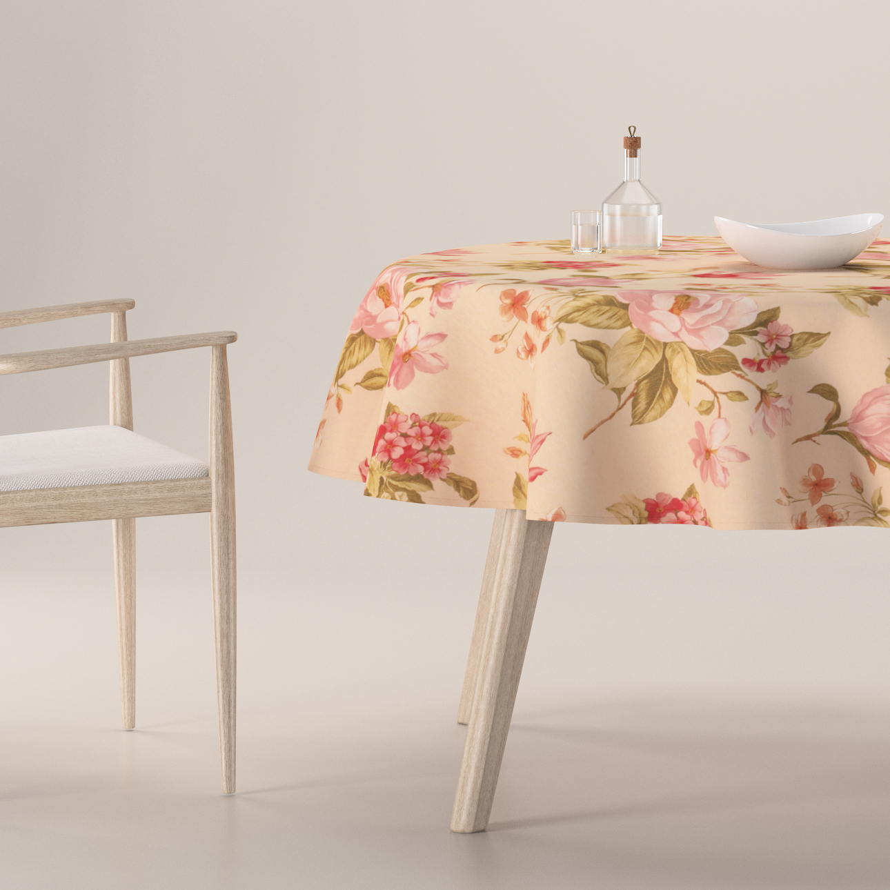Obrus okrúhly, výrazný vzor ružovozelené kvety na ľanovom podklade , Londres, 143-87