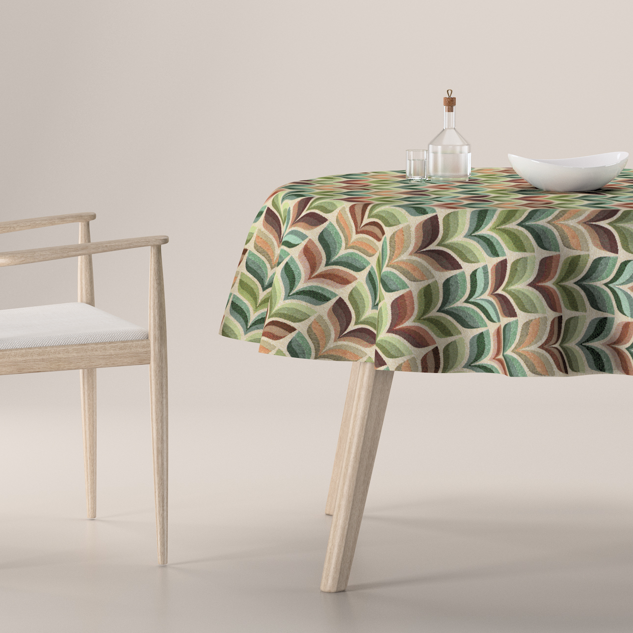 Obrus okrúhly, zelené a béžové kvetinové motívy, Intenso Premium, 144-17