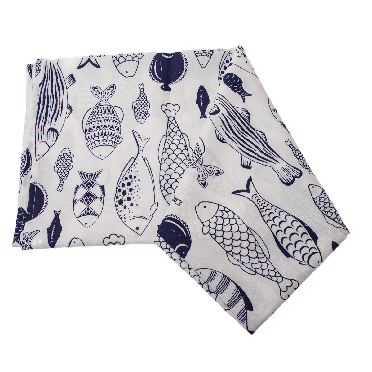 Praktický obrus s motívom rybičiek nesmie chýbať v žiadnej domácnosti. Šikovný pomocník na každodenné použitie sa hodí do každého interiéru. Vďaka vodeodolnej úprave sa už nebudete musieť trápiť kvôli rozliatemu čaju, káve alebo vode. Je vyrobený z polyestru s lurexom.