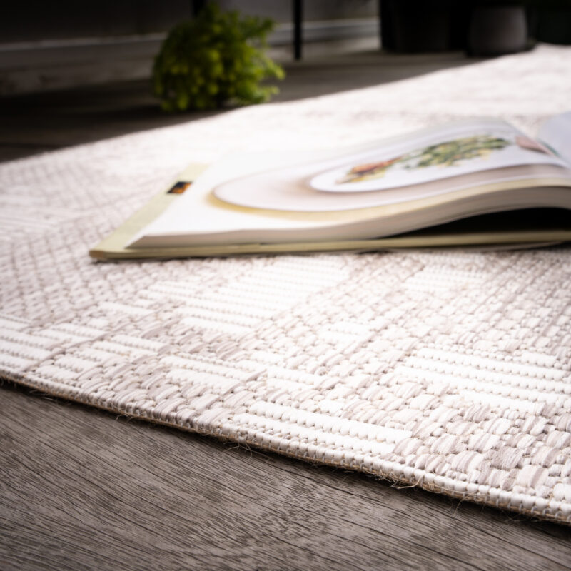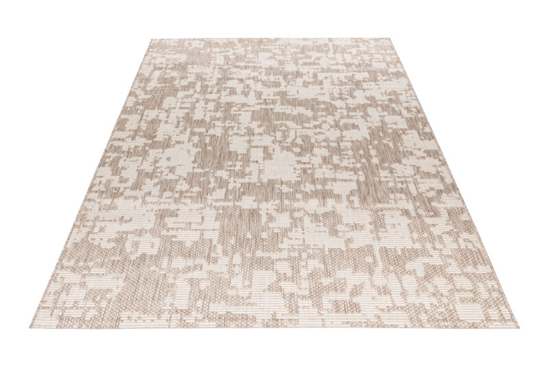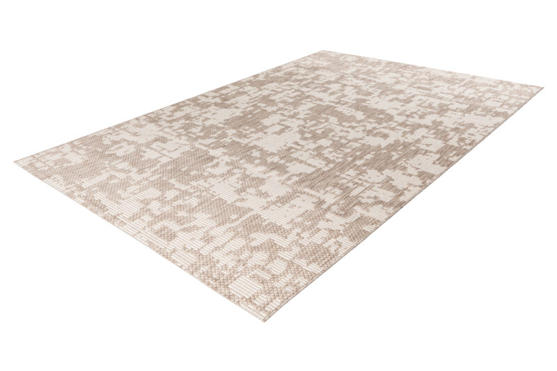 Vďaka kombinácii béžovej a krémovo bielej farby a abstraktného motívu tento koberec okamžite upúta pozornosť a dodá vášmu interiéru či exteriéru moderný nádych. Starostlivé obšitie na dlhších stranách nielen prispieva k jeho odolnosti, ale taktiež zaisťuje elegantný vzhľad. Perfektná voľba pre tých, ktorí hľadajú štýlový a zároveň praktický doplnok do svojho domova. Je totiž kompatibilný s podlahovým kúrením aj robotickým vysávačom.