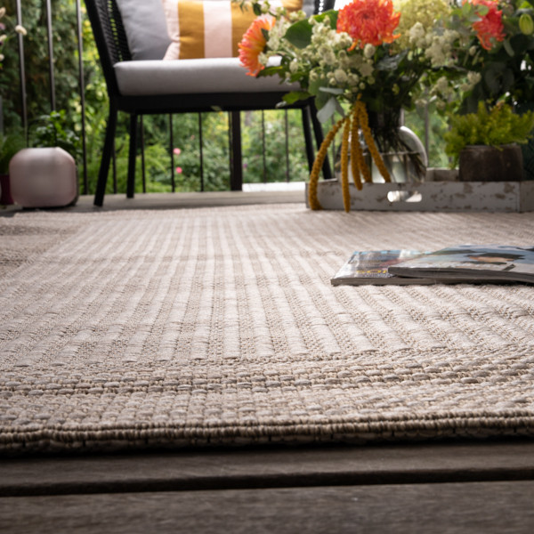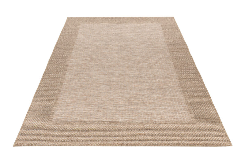 Tento koberec v béžovom prevedení so svetlejším stredom a tmavšími okrajmi predstavuje dokonalú harmóniu farieb a designu. Je vyrobený z kvalitného polypropylénu s ohľadom na odolnosť a jednoduchú údržbu, a preto je ideálnym doplnkom pre každý priestor, a to vrátane exteriéru.