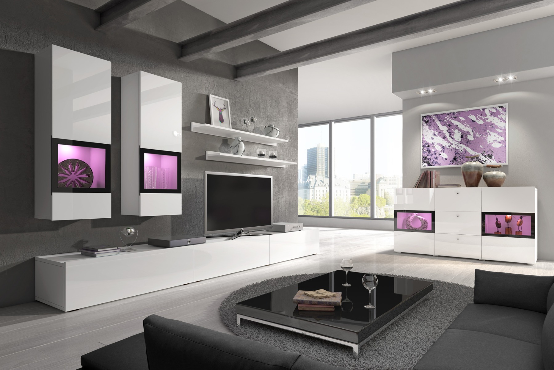 Obývacia stena Barly 10 biela + biely lesk