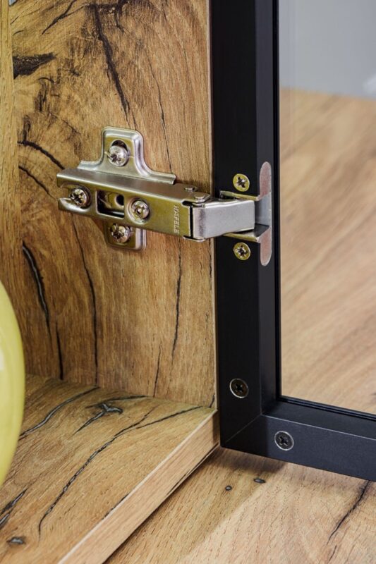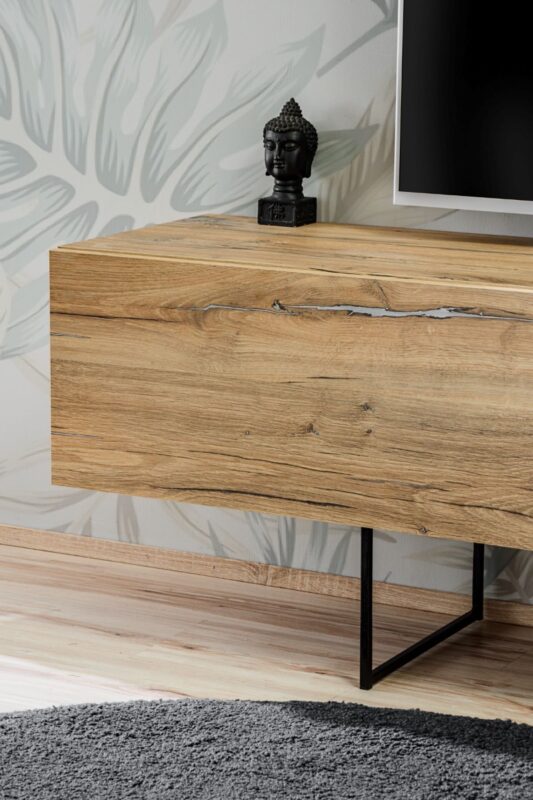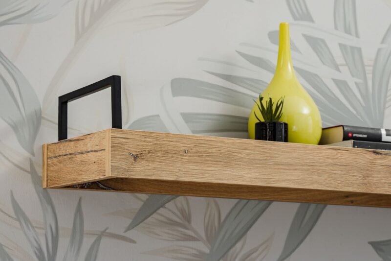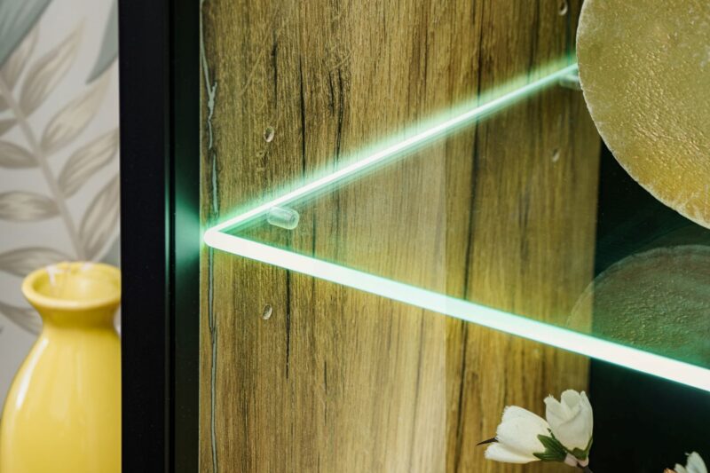 Štýlová obývacia stena Sunrise asymetrických tvarov v kontraste dekora duba Sagstaff s čiernou farbou vytvára unikátny kus nábytku, ktorý bude zaručene dizajnovým prvkom vašej domácnosti.Súčasťou zostavy je:-TV stolík,ktorý pozostáva z troch samostatných nástenných skriniek. Dole na ľavej strane sa nachádza čierna kovová noha.Pod RTV stolíkom sa nachádza skrinka s výklopnými dvierkami.-závesnú policu s kovovou dekoráciou.-nástennú vitrínu ktorá je z časti presklená orámovaná čiernym hliníkovým rámom. Za dvierkami sa nachádza jedna polica a dve sklenené police osvetlené LED osvetlením,ktoré dodajú šmrnc obývacej stene. Systém otvárania Push to Open.Rozmery (š/v/h):TV stolik:(200/30/40)cmnástenná vitrína:(40/120/30)cmzávesná polica:(120/7+8/25)cmCelkové rozmery:(240/170/40)cmDodávame v demontovanom stave, pričom montáž je veľmi jednoduchá.