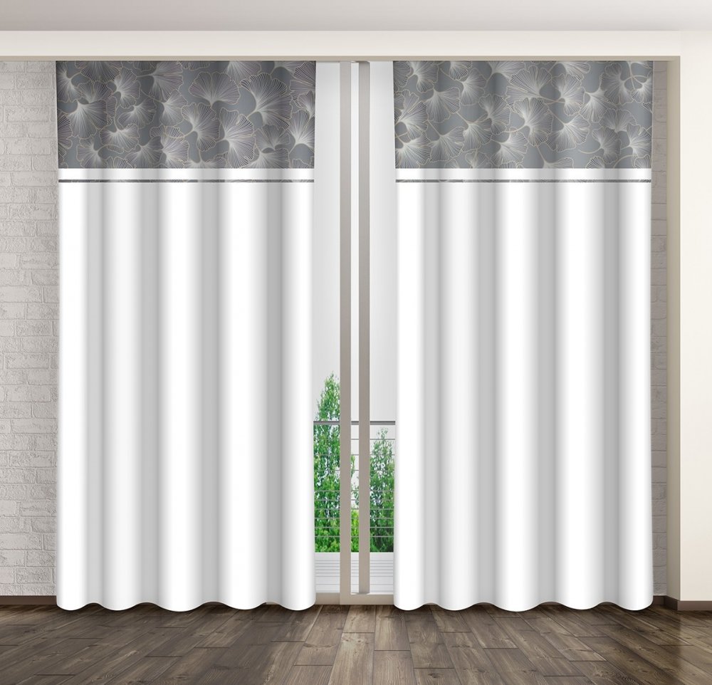 Očarujúce biele závesy s detailom listia Dĺžka: 250 cm