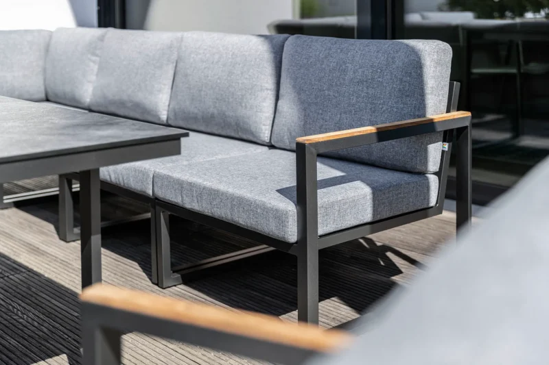 Oddýchnite si počas dňa a večer zakončite s priateľmi občerstvením a nápojmi – so sériou OCEAN SKID sa terasa stáva druhou obývačkou a teda vaším novým obľúbeným miestom. Ľavý modul s teakovou podrúčkou sa dá využiť aj ako samostatné kreslo alebo pohovka a môže byť teda použitá ako samostatný prvok.