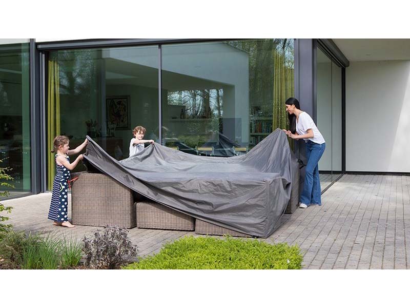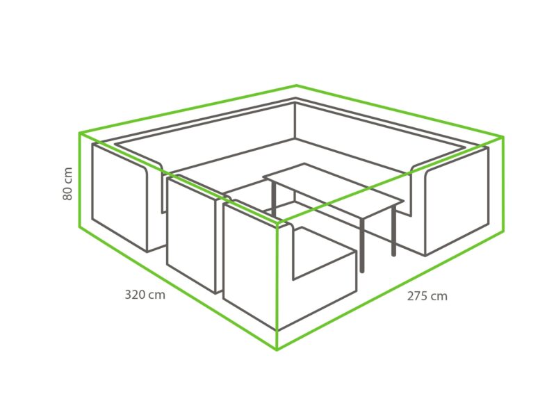 Exteriérová ochranná plachta na sedaciu súpravu s rozmermi 320×275 cm.