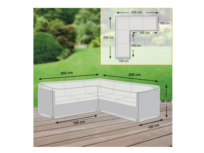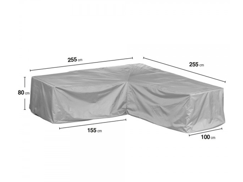 Exteriérová ochranná plachta v tvare L pre sedaciu súpravu s rozmermi 255x255x80cm.