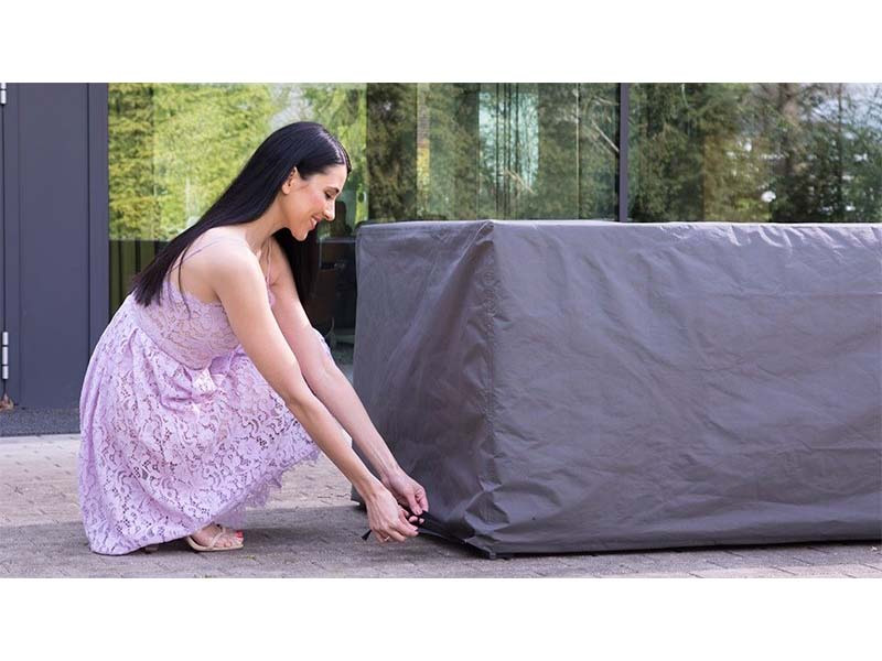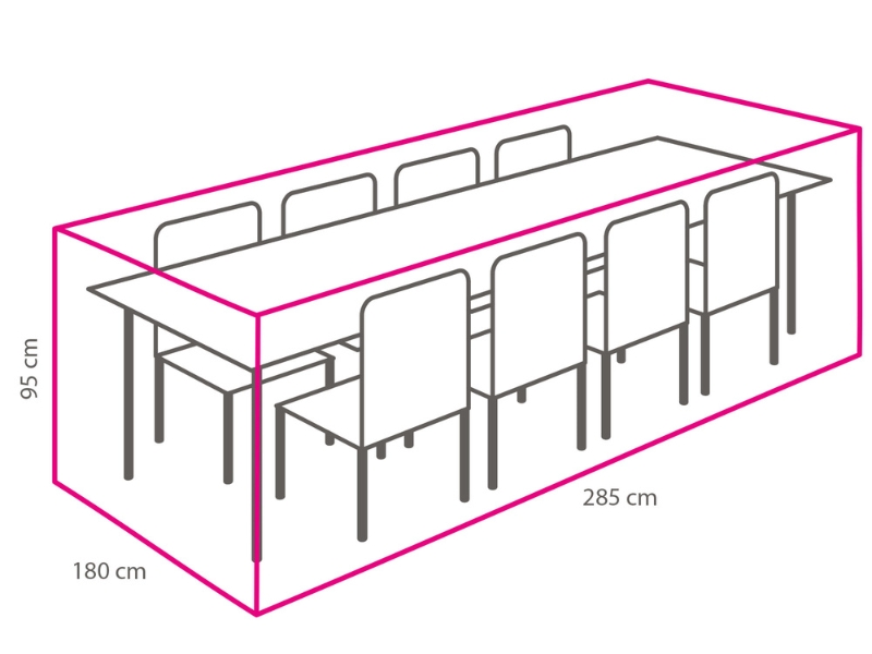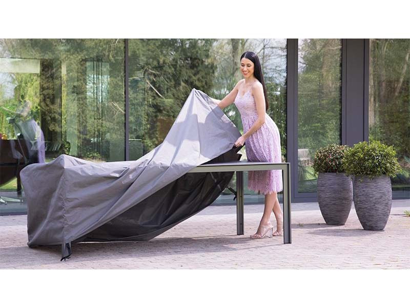 Exteriérová ochranná plachta na stolovú súpravu XL II s rozmermi 285x180x95 cm.