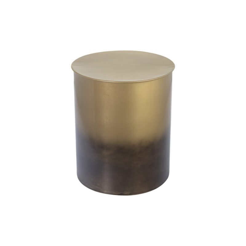 Kovový stolík v tvare valca s matnou povrchovou úpravou. Tento očarujúci prvok vybavenia sa stane nevšedným akcentom vášho interiéru. Bol vyrobený z kovu s matným povrchom, čo mu dodáva výnimočný charakter. Zaujímavá farebná kombinácia a použitie odolného materiálu z neho činí dizajnovú raritu, ktorá sa hodí ako vkusný doplnok do obývacej izby alebo spálne.Rozmery: šír. cm, dĺž. cm, výš. 50 cm.Materiál: kov.