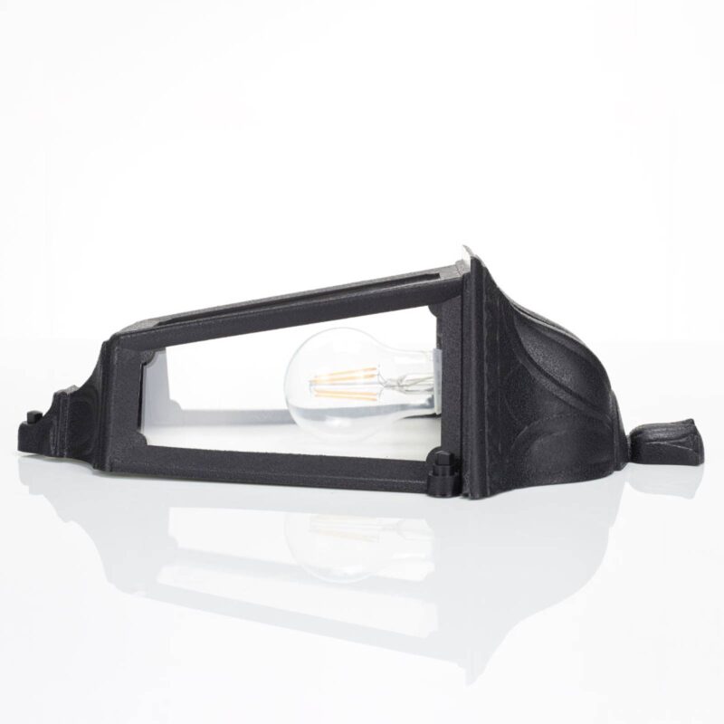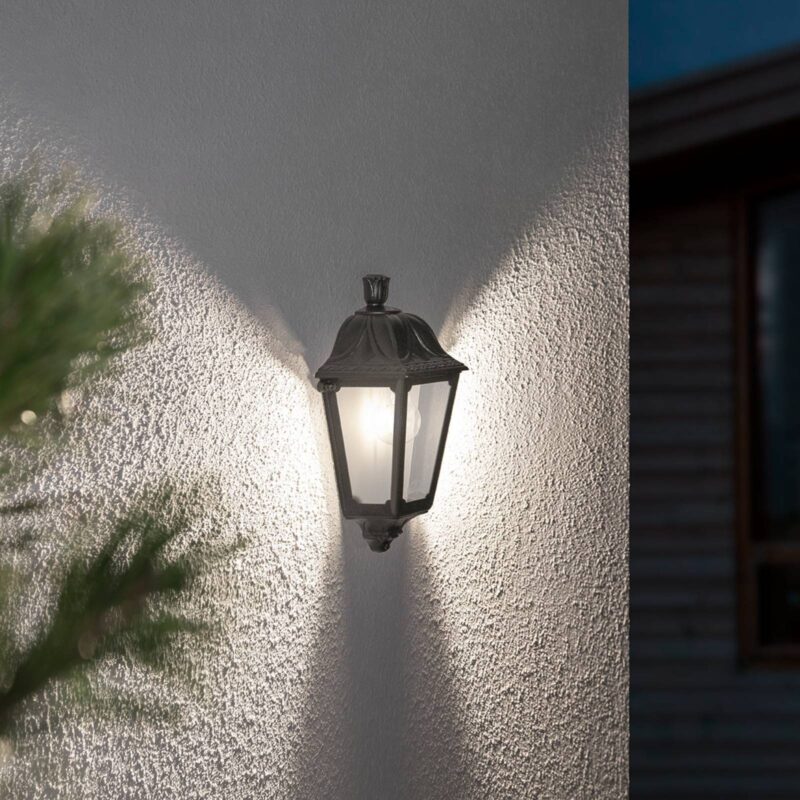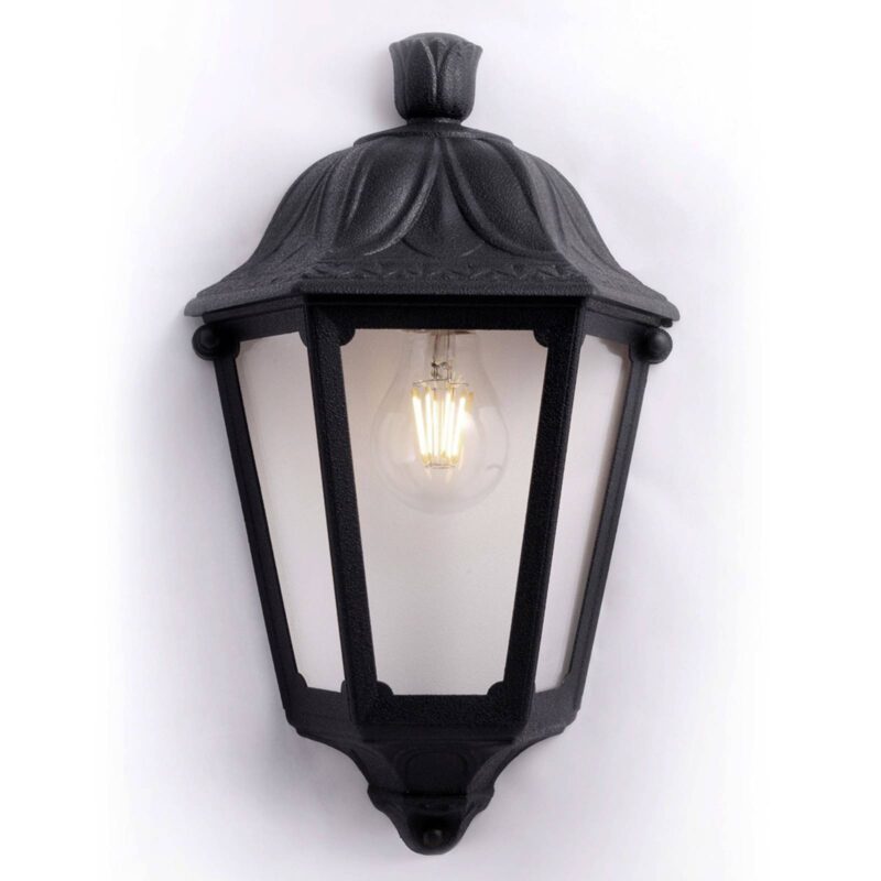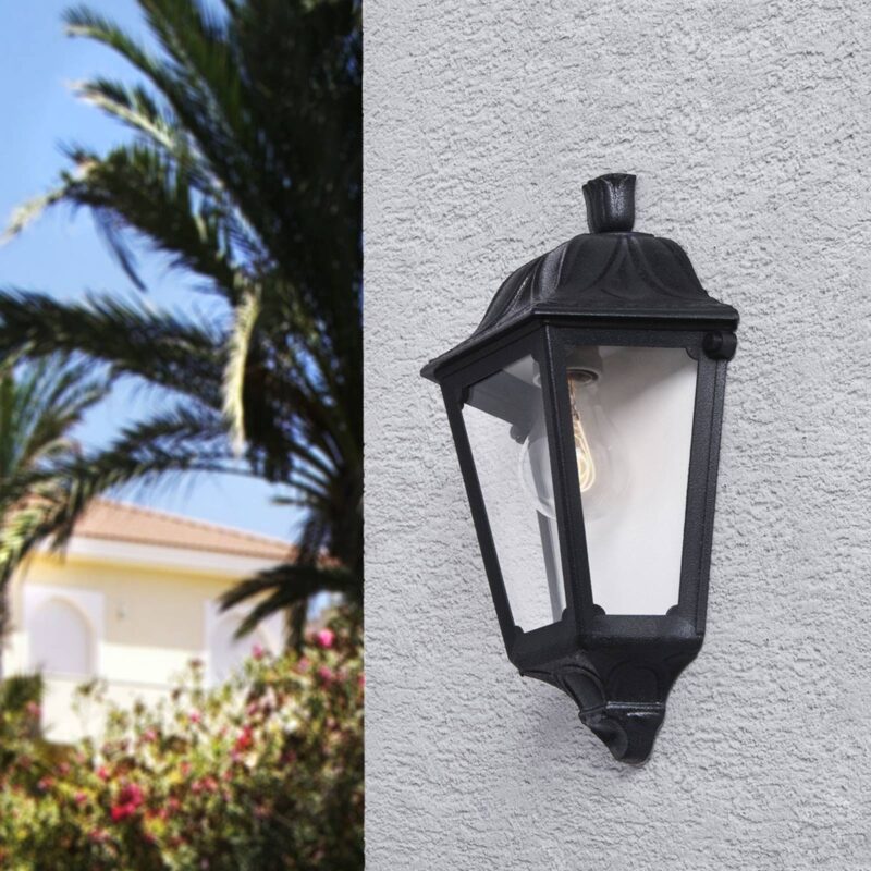 Pololucernové vonkajšie nástenné svietidlo Iesse s LED filamentovou žiarovkou Atraktívne navrhnuté vonkajšie nástenné svietidlo Iesse zdobí každú fasádu a dokonale zapadá do pozemku v klasickom štýle. Pokiaľ ide o farbu, s jeho čiernym telom a čírym tienidlom je ho možné kombinovať mnohými spôsobmi. Zvláštnosťou svietidla Iesse je na jednej strane veľmi robustné vyhotovenie – svietidlo Iesse je odolné voči nárazom a aj hrdzi a korózii (odolné voči morskej vode) – a na druhej strane je osadené LED filamentovou žiarovkou s objímkou E27, ktorá zaisťuje vyvážené a veľmi pôsobivé vyžarovanie svetla. Vonkajšie nástenné svietidlo z Talianska, ktoré je možné dokonca umiestniť aj na budovy v blízkosti mora.