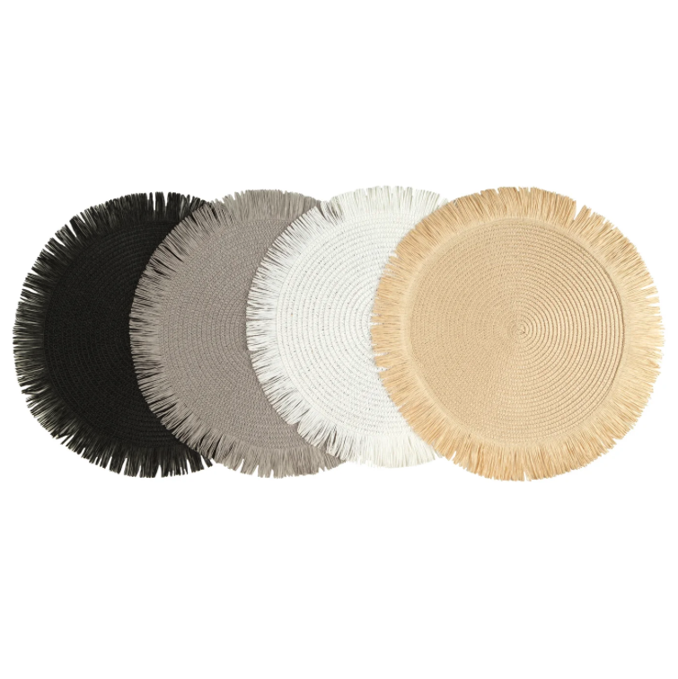 Okrúhla podložka v boho štýle so strapcami – prestieranie 38 cm béžová