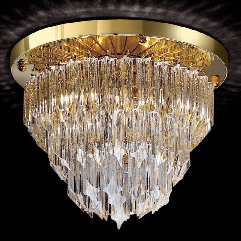 Impozantné stropné svietidlo Archimede so zlatomStropné svietidlo Archimede je pokryté 24-karátovým zlatom, ktoré mu dodáva mimoriadne vznešený vzhľad. Visí z neho nespočetné množstvo podlhovastých sklenených prvkov, v ktorých sa jasné svetlo tisíckrát odrazí, kým sa uvoľní do miestnosti, kde sa nádherne rozloží.