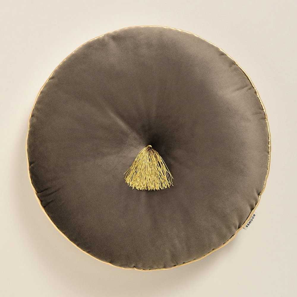 Pôvabné okrúhle dekoračné vankúše ukradnú srdcia všetkých milovníkov jemných látok a jedinečných tvarov. Perfektne sa hodia ako doplnok k štýlu pohovky v obývačke alebo ako doplnok do spálne. Elegantné lemovanie a očarujúci zlatý strapec dodávajú vankúšom dekoratívny šarm. Milujeme túto kolekciu, budete ju milovať aj vy!