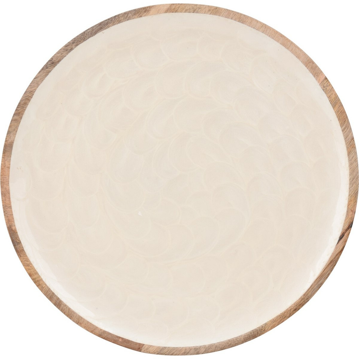 Plytký tanier z mangového dreva v spodnej časti a s hladkou glazúrou s dekorom rybích šupín vo vnútri bude krásnym prírodným akcentom v každom interiéri. Ideálne na využitie pre servis pochutín návštevám alebo na prezentáciu interiérových doplnkov. Unikátny vzhľad taniera ozvláštni každú výzdobu čím si zaslúži obdiv.