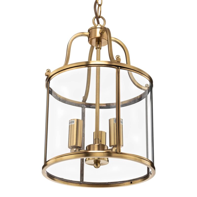 Štýlové závesné svietidlo Rieka v tvare okrúhleho lampáša s priemerom 25 cm Závesné svietidlo Rieka s bronzovou kovovou konštrukciou a čírym sklom vyzerá veľmi vznešene. Tri 40 W sviečkové žiarovky poskytujú atmosférické svetlo. Pri inštalácii je možné zvoliť reťazové zavesenie svietidla. Svietidlo má celkovú dĺžku 120 cm.