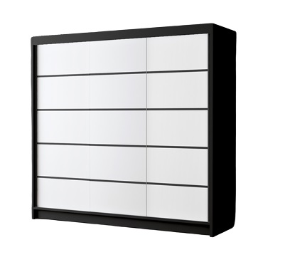 Táto moderná šatníková skriňa OLEANDER je v štýlovom a funkčnom prevedení. Je vhodná do moderných interiérov. Šatníková skriňa je vyrobená z kvalitných LTD dosiek o hrúbke 16 mm, ktoré sú nenáročné na údržbu. Hrany sú ukončené PVC dyhou. Skriňa je trojdverová. Dvere šatníkovej skrine sú posuvné. Vo vnútri sa nachádza 9 políc a 1 šatníková tyč na uloženie vášho oblečenia.Dizajn a vlastnosti:posuvný systém dveríHliníkové vodidlá Sevrollrukoväť vo forme hliníkovej lišty pozdĺž dverí (čierna)hliníkové kľučky zabraňujú ohýbaniu dveríozdobné lišty v čiernej matnej a lichobežníkovom tvarefarba: čierna, bielaRozmery skrine:šírka: 200 cmvýška: 215 cmhĺbka: 58 cmDodávame v demontovanom stave.