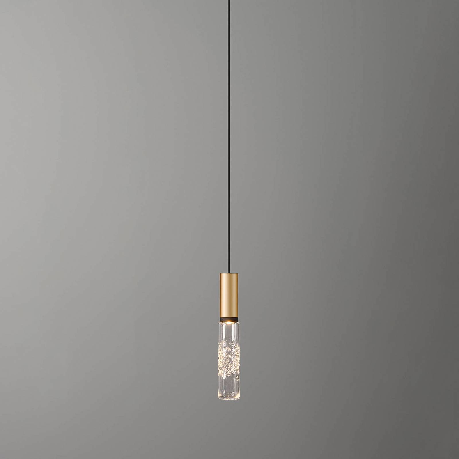 Závesné svietidlo LED Beam Stick Glass v tvare štíhleho valca Závesná lampa Beam Stick Glass, ktorú navrhol medzinárodne uznávaný dizajnér Marc Sadler, spája moderný dizajn, priame osvetlenie stola/oblasti a dekoratívny nádych. Štíhly valcovitý prívesok je pripojený k čiernemu káblu. Závesné svietidlo pozostáva z lakovaného hliníkového tela s vrúbkovaným vzorom na spodnom konci a integrovaným zdrojom svetla LED, ktorý svieti smerom nadol, ako aj z číreho skla pripevneného pod ním. Ten je vybavený nepravidelnými vzduchovými inklúziami, ktoré zabezpečujú atraktívne lomy svetla a dodávajú každému exempláru individuálny charakter. Ovládač LED (zapnutie/vypnutie) je integrovaný v okrúhlej strieške vo farbe svietidla. Závesné svietidlo LED presvedčí aj vynikajúcim podaním farieb (CRI 97), takže osvetlené predmety sú krásne zobrazené.