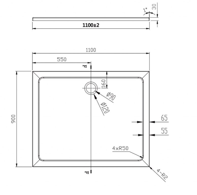 OLSEN SPA – Obdĺžniková mramorová sprchová vanička VENETS – Rozmer A – 110, Rozmer B – 90 VANKOBD9011