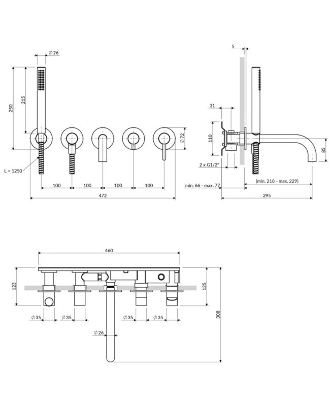 Vaňová batéria OMNIRES Y pre podomietkovú inštaláciu s integrovanou ručnou sprchou nadchne svojou jednoduchou líniou a dokonalým tvarom, ktorý vyjadruje vášeň v honbe za ideálom. Dizajn bol inšpirovaný a založený na tvare kruhu. Jeho nadčasový a dokonale prepracovaný design, vytvorený v duchu minimalizmu, ponúka maximum možností interiérového designu. Vaňová batéria a vaňa sú vďaka svojmu symetrickému tvaru dokonale zladené a vytvárajú harmonickú kompozíciu. Skrytá inštalácia zaručuje úsporu miesta a ľahké čistenie. rozmery rozety: ø7,2 cm dosah hubice od dláždenej plochy: 22-23 cm minimálna hĺbka steny: 6,4 cm dva 1/2” vstupy (studená a horúca voda) mosadzná ručná sprcha, 1-funkcia nerezová flexibilná sprchová hadica, dĺžka: 125 cm vrátane vstavaných dielov(GT) Ean: 5902539869989