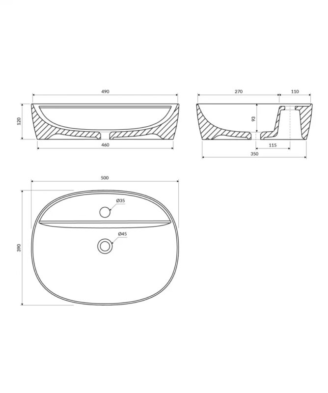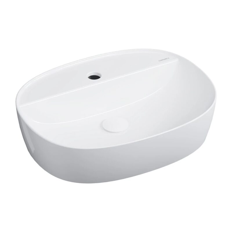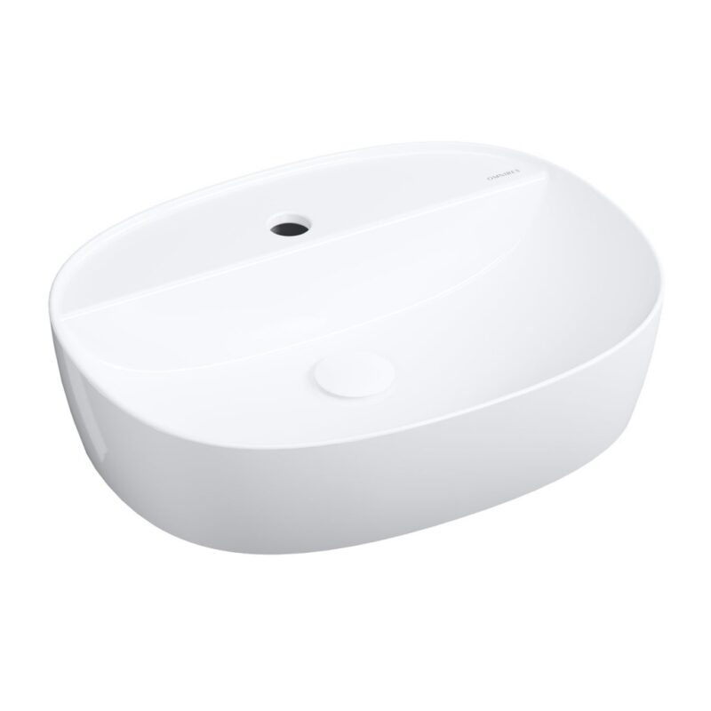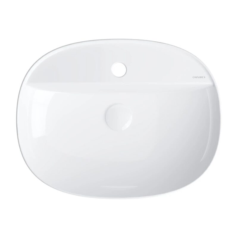 Umývadlo OMNIRES ATLANTA na dosku sa vyznačuje oválnym tvarom a zaobleným vnútrom. Jemné zaoblenie dodáva bloku jemnosť. Jednoduchý výrez vo vnútri vytvára funkčný priestor a umožňuje montáž umývadlovej batérie na okraj.