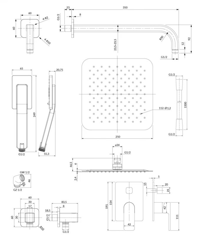 OMNIRES – BARETTI podomietkový sprchový systém chróm /CR/ SYSBA10XCR