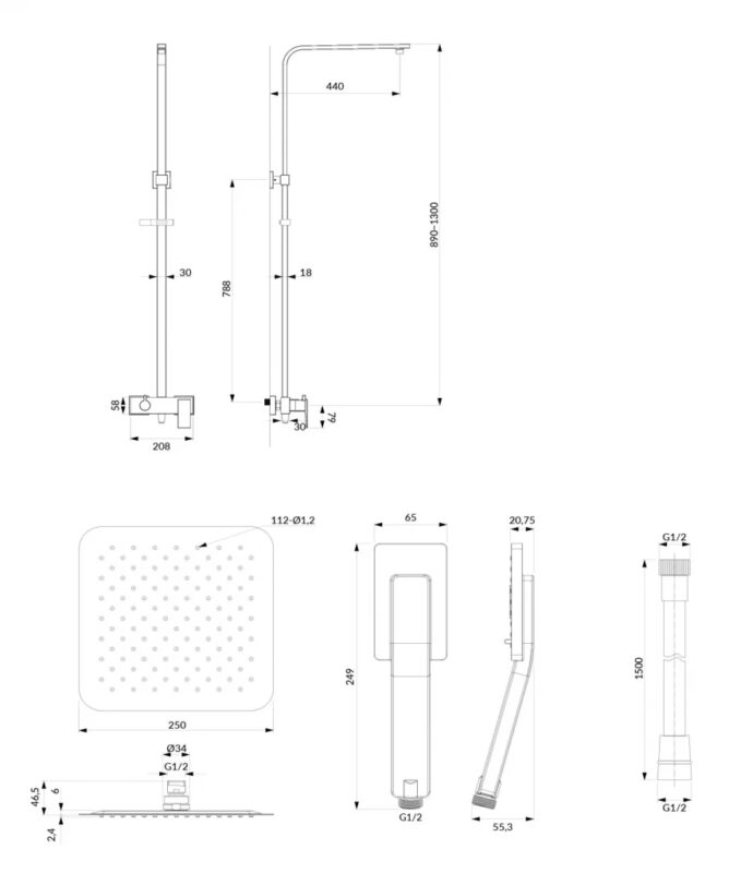 nerezová dažďová sprcha (WGU225CR), rozmery: 25 x 25 cm, dosah od steny: 44 cm