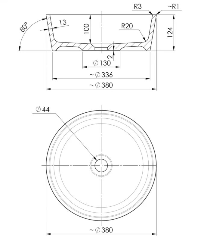 Umývadlo je vyrobené z kompozitného materiálu (M+), ktorého hlavnou zložkou je dolomit. Inovatívna výrobná technológia zaručuje dokonalé prevedenie každého detailu a zároveň zaisťuje mimoriadnu životnosť a odolnosť.