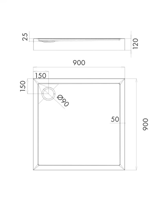 OMNIRES – CAMDEN akrylátová sprchová vanička štvorec, 90 x 90 cm biela lesk /BP/ CAMDEN90/KBP