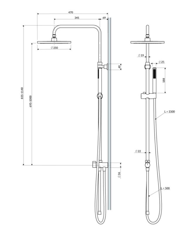 na inštaláciu s akoukoľvek sprchovou alebo vaňovou batériou na omietku sprchový stĺp (UN10041CR) s prepínačom a ramenom na inštaláciu dažďovej sprchy rozstup montážnych držiakov: 73,2 cm dažďová sprcha (WGR125CR), rozmer: ø25 cm ručná sprcha (MICRO-RCR), 1-funk sprchová hadica s oceľovým krytom, dĺžka: 150 cm pripojovacia hadica pre sprchovú batériu otočné rameno nastaviteľná výška, minimálna/maximálna výška systému: 83,5 cm/114 cm(GT) Ean: 5902539885866