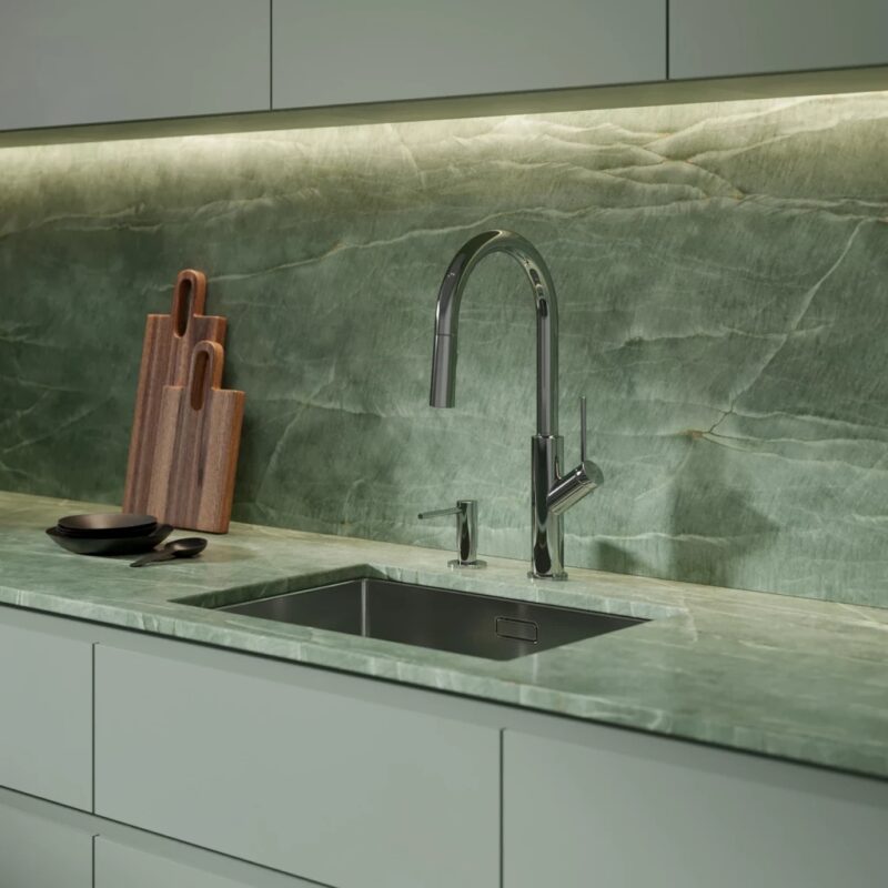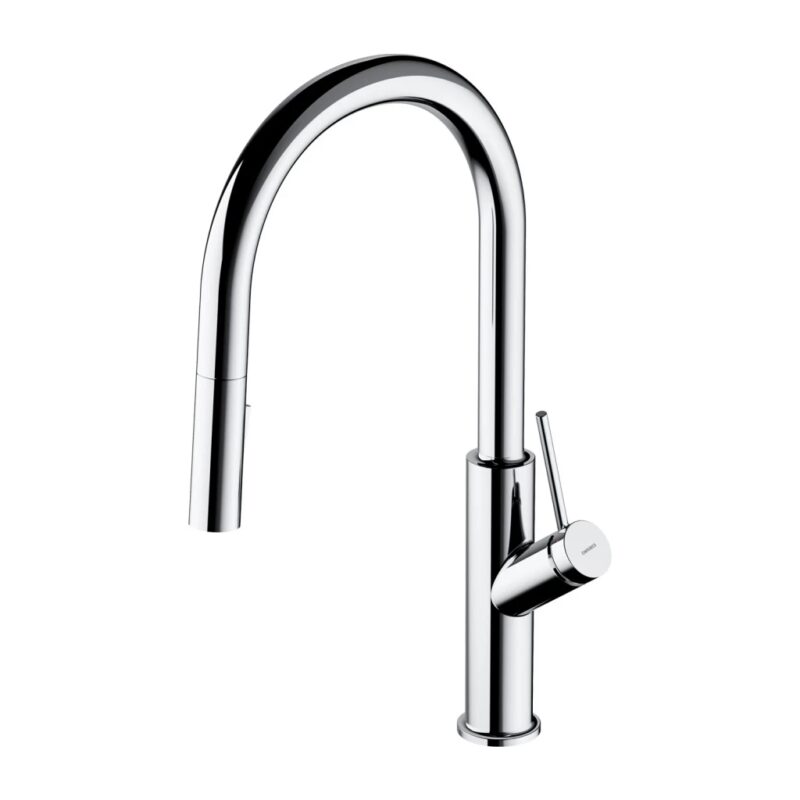 Kuchynská batéria OMNIRES BEND sa vyznačuje krásnou, minimalistickou formou založenou na kruhoch a oblúkoch. Batéria s výškou 44,9 cm je vybavená otočným výsuvným výtokom s 2funkčnou sprchou, ktorá zvyšuje dosah prúdu vody a komfort používania. Batéria je vyrobená z kvalitnej mosadze a vybavená najkvalitnejšou keramickou kartušou. Inovatívne technologické riešenia zaisťujú najvyšší komfort používania a znižujú spotrebu vody na polovicu.
