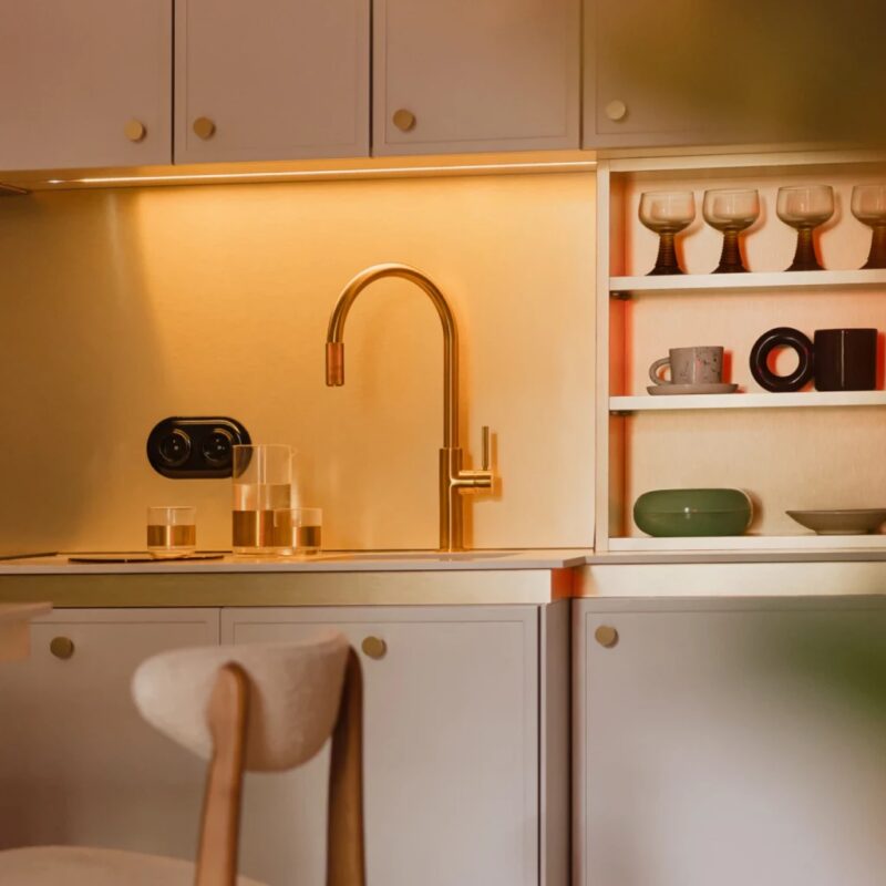 Kuchynská batéria OMNIRES SWITCH kombinuje minimalistický dizajn založený na vyvážených proporciách s praktickou funkčnosťou, poskytuje bežnú a filtrovanú vodu. Výrazné, precízne rebrované detaily umožňujú intuitívne použitie tým, že označujú dva nezávislé body otvorenia vody: bežnú vodu a filtrovanú vodu na konci výtoku – stačí otočiť krúžkom a pohár naplniť rýchlym prúdom pitnej vody.Batéria je k dispozícii so sadou univerzálnych prípojok pre pripojenie akejkoľvek filtračnej sady namontovanej v štandardnej drezovej skrinke.Výrobok je vyrobený z vysoko kvalitnej mosadze a vybavený najkvalitnejšou keramickou kartušou s technológiou COLD START. Vďaka tomu sa prúd na umývanie rúk a riadu štandardne otvára studenejšou vodou, čo šetrí energiu a spotrebu teplej vody. Vertikálna východisková poloha batérie umožňuje inštaláciu batérie blízko steny bez toho, aby ste sa museli starať o priestor potrebný na jej otočenie pre otvorenie zdroja vody.Brúsené zlato je ušľachtilý povrch s elegantným odtieňom a moderným, saténovým povrchom. Obliečka bola vyrobená pomocou pokročilej technológie PVD.