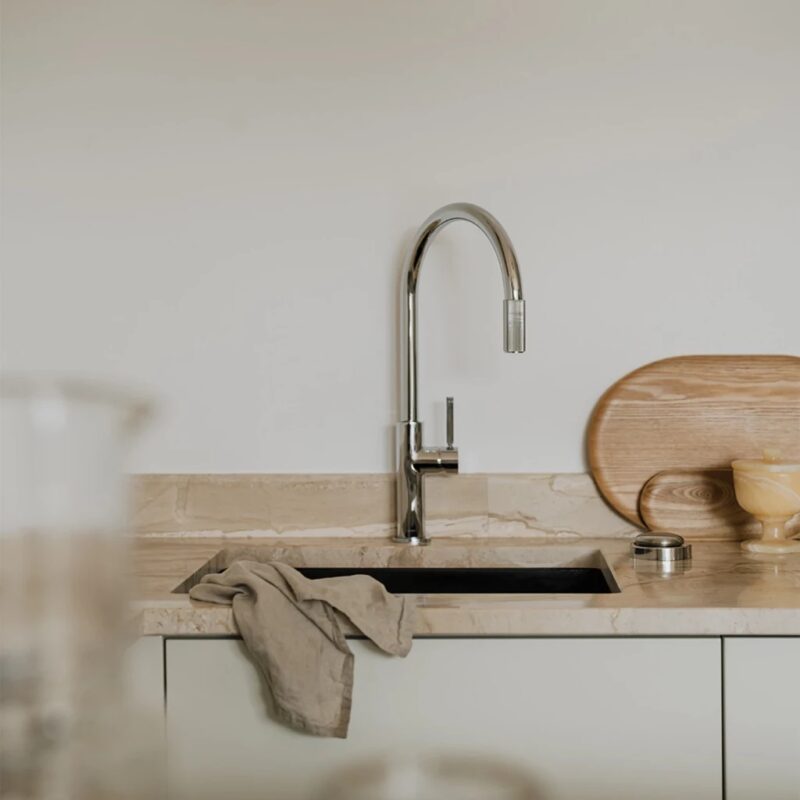 Kuchynská batéria OMNIRES SWITCH kombinuje minimalistický dizajn založený na vyvážených proporciách s praktickou funkčnosťou, poskytuje bežnú a filtrovanú vodu. Výrazné, precízne rebrované detaily umožňujú intuitívne použitie tým, že označujú dva nezávislé body otvorenia vody: bežnú vodu a filtrovanú vodu na konci výtoku – stačí otočiť krúžkom a pohár naplniť rýchlym prúdom pitnej vody.Batéria je k dispozícii so sadou univerzálnych prípojok pre pripojenie akejkoľvek filtračnej sady namontovanej v štandardnej drezovej skrinke.Výrobok je vyrobený z vysoko kvalitnej mosadze a vybavený najkvalitnejšou keramickou kartušou s technológiou COLD START. Vďaka tomu sa prúd na umývanie rúk a riadu štandardne otvára studenejšou vodou, čo šetrí energiu a spotrebu teplej vody. Vertikálna východisková poloha batérie umožňuje inštaláciu batérie blízko steny bez toho, aby ste sa museli starať o priestor potrebný na jej otočenie pre otvorenie zdroja vody.Chróm je univerzálna povrchová úprava so striebristou farbou a dokonale hladkým, lesklým povrchom.