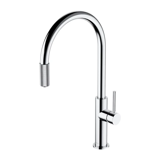 Kuchynská batéria OMNIRES SWITCH kombinuje minimalistický dizajn založený na vyvážených proporciách s praktickou funkčnosťou, poskytuje bežnú a filtrovanú vodu. Výrazné, precízne rebrované detaily umožňujú intuitívne použitie tým, že označujú dva nezávislé body otvorenia vody: bežnú vodu a filtrovanú vodu na konci výtoku – stačí otočiť krúžkom umiestneným na ňom a naplniť pohár rýchlym prúdom pitnej vody s najvyššou chuťou.Batéria je k dispozícii v sete so systémom vodnej filtrácie Dafi, ktorý sa skladá z filtračnej patróny a prietokomeru. Technológia aktívneho uhlia a živice použitá vo filtri umožňuje znížiť obsah chlóru a ťažkých kovov a taktiež znížiť úroveň tvrdosti vody. Výmena filtra je extrémne jednoduchá a merač o jej nutnosti informuje na základe skutočného prietoku vyčistenej vody. Prvky filtračného systému sa ľahko inštalujú do akejkoľvek štandardnej drezovej skrinky.Výrobok je vyrobený z vysoko kvalitnej mosadze a vybavený najkvalitnejšou keramickou kartušou s technológiou COLD START. Vďaka tomu sa prúd na umývanie rúk a riadu štandardne otvára studenou vodou, čo šetrí energiu a spotrebu teplej vody. Vertikálna východisková poloha batérie umožňuje inštaláciu batérie blízko steny bez toho, aby ste sa museli starať o priestor potrebný na jej otočenie pre otvorenie zdroja vody.Chrom je univerzálna povrchová úprava so striebristou farbou a dokonale hladkým, lesklým povrchom.