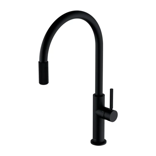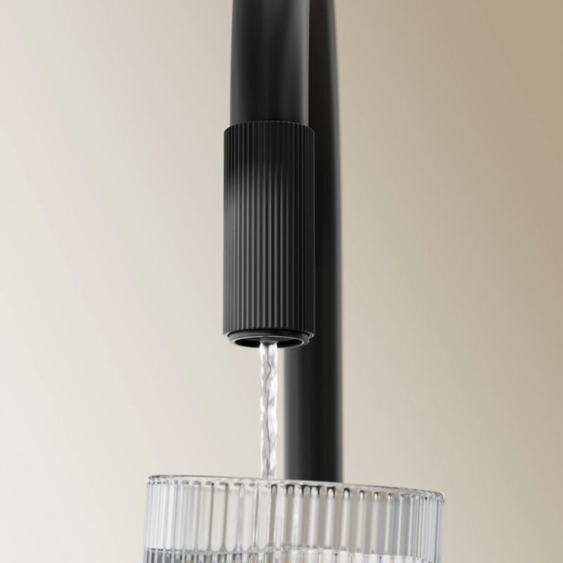 Kuchynská batéria OMNIRES SWITCH kombinuje minimalistický dizajn založený na vyvážených proporciách s praktickou funkčnosťou, poskytuje bežnú a filtrovanú vodu. Výrazné, precízne rebrované detaily umožňujú intuitívne použitie tým, že označujú dva nezávislé body otvorenia vody: bežnú vodu a filtrovanú vodu na konci výtoku – stačí otočiť krúžkom umiestneným na ňom a naplniť pohár rýchlym prúdom pitnej vody s najvyššou chuťou.Batéria je k dispozícii v sete so systémom vodnej filtrácie Dafi, ktorý sa skladá z filtračnej patróny a prietokomeru. Technológia aktívneho uhlia a živice použitá vo filtri umožňuje znížiť obsah chlóru a ťažkých kovov a taktiež znížiť úroveň tvrdosti vody. Výmena filtra je extrémne jednoduchá a merač o jej nutnosti informuje na základe skutočného prietoku vyčistenej vody. Prvky filtračného systému sa ľahko inštalujú do akejkoľvek štandardnej drezovej skrinky.Výrobok je vyrobený z vysoko kvalitnej mosadze a vybavený najkvalitnejšou keramickou kartušou s technológiou COLD START. Vďaka tomu sa prúd na umývanie rúk a riadu štandardne otvára studenou vodou, čo šetrí energiu a spotrebu teplej vody. Vertikálna východisková poloha batérie umožňuje inštaláciu batérie blízko steny bez toho, aby ste sa museli starať o priestor potrebný na jej otočenie pre otvorenie zdroja vody.Čierna je výrazná povrchová úprava s hlbokým odtieňom a dokonale hladkým, saténovým povrchom.