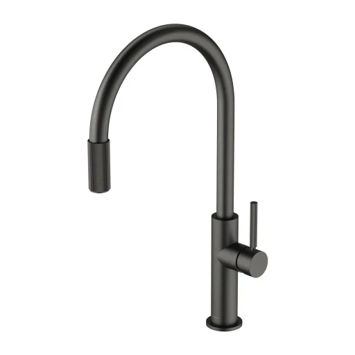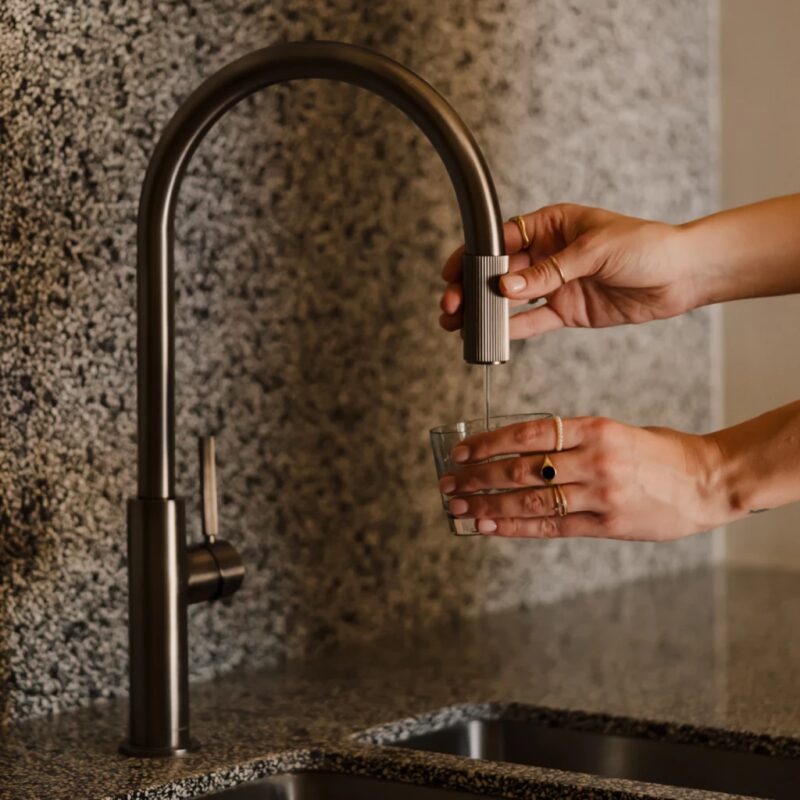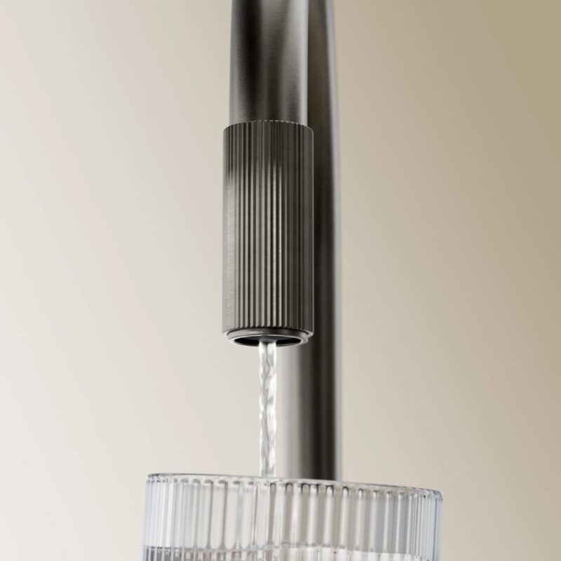 Kuchynská batéria OMNIRES SWITCH kombinuje minimalistický dizajn založený na vyvážených proporciách s praktickou funkčnosťou, poskytuje bežnú a filtrovanú vodu. Výrazné, precízne rebrované detaily umožňujú intuitívne použitie tým, že označujú dva nezávislé body otvorenia vody: bežnú vodu a filtrovanú vodu na konci výtoku – stačí otočiť krúžkom umiestneným na ňom a naplniť pohár rýchlym prúdom pitnej vody s najvyššou chuťou.Batéria je k dispozícii v sete so systémom vodnej filtrácie Dafi, ktorý sa skladá z filtračnej patróny a prietokomeru. Technológia aktívneho uhlia a živice použitá vo filtri umožňuje znížiť obsah chlóru a ťažkých kovov a taktiež znížiť úroveň tvrdosti vody. Výmena filtra je extrémne jednoduchá a merač o jej nutnosti informuje na základe skutočného prietoku vyčistenej vody. Prvky filtračného systému sa ľahko inštalujú do akejkoľvek štandardnej drezovej skrinky.Výrobok je vyrobený z vysoko kvalitnej mosadze a vybavený najkvalitnejšou keramickou kartušou s technológiou COLD START. Vďaka tomu sa prúd na umývanie rúk a riadu štandardne otvára studenou vodou, čo šetrí energiu a spotrebu teplej vody. Vertikálna východisková poloha batérie umožňuje inštaláciu batérie blízko steny bez toho, aby ste sa museli starať o priestor potrebný na jej otočenie pre otvorenie zdroja vody.Grafit je zaujímavá povrchová úprava v odtieni kovovo šedej, so saténovým, kartáčovaným povrchom.