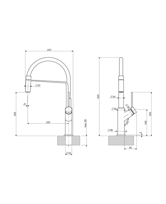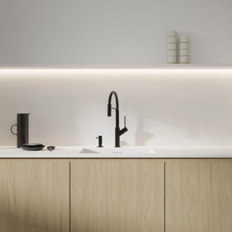 Kuchynská batéria OMNIRES VITA je kombináciou dokonalej formy a najvyššej funkčnosti. Moderný, minimalistický design je založený na tvaroch oblúka a kruhu. Otočný výtok vybavený sprchou je možné dodatočne odňať, vďaka čomu sa prúd vody ľahko dostane na akékoľvek miesto. Horná časť hubice je vyrobená z pružnej čiernej gumy. Celková výška batérie je 44 cm, čo zvyšuje komfort používania. Batéria je vyrobená z kvalitnej mosadze a vybavená najkvalitnejšou keramickou kartušou. Inovatívne technologické riešenia umožňujú znížiť spotrebu vody na polovicu a zaistiť najvyšší komfort používania.