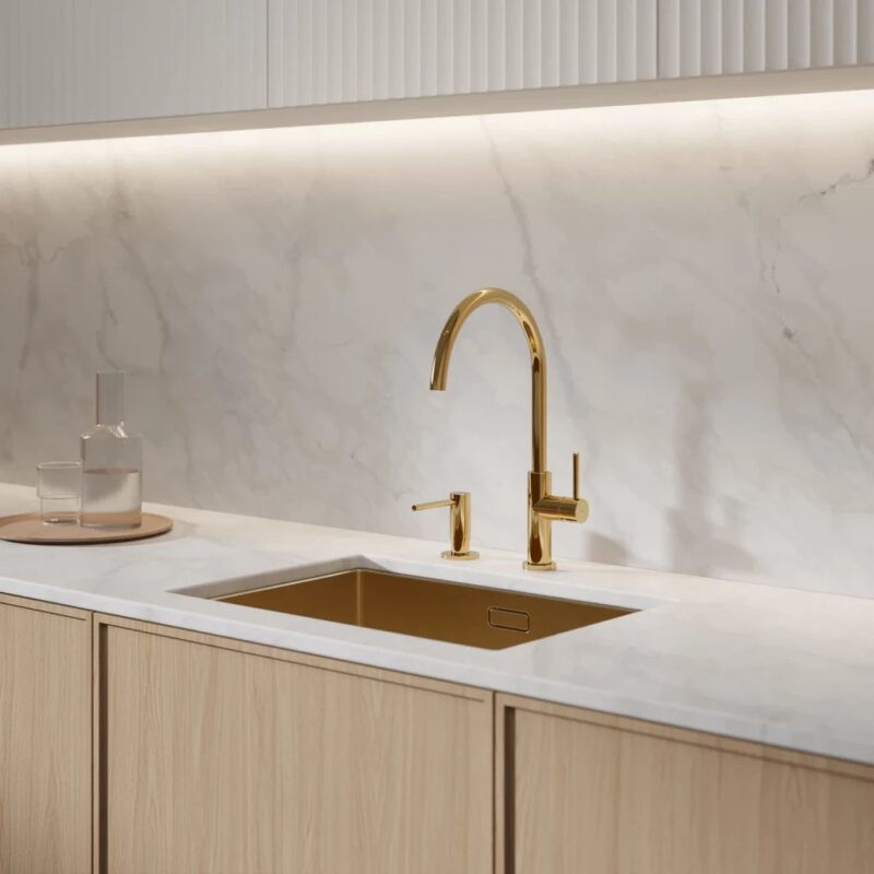 Kuchynská batéria OMNIRES Y zaujme svojimi čistými líniami a dokonalým tvarom, ktorý je výrazom vášne v honbe za dokonalosťou. Nadčasový, dokonale prepracovaný vzor, vytvorený v duchu minimalizmu, dáva maximálne možnosti aranžmánu. Batéria je vybavená otočným výtokom, ktorý zvyšuje komfort používania. Batéria je vyrobená z kvalitnej mosadze a vybavená najkvalitnejšou keramickou kartušou. Inovatívne technologické riešenia zaisťujú najvyšší komfort používania a znižujú spotrebu vody na polovicu. Zlato je ušľachtilý povrch s elegantným, svetlým odtieňom a dokonale hladkým, lesklým povrchom. Obliečka bola vyrobená pokročilou technológiou PVD. Dizajn: Janusz Langner, Štúdio OMNIRES otočný výtok dosah výtoku: 21 cm výška výtoku vody: 24 cm celková výška batérie: 36,5 cm(GT) Ean: 5902539842760