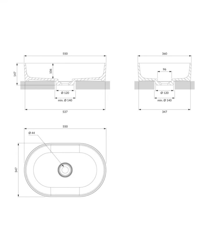 Umývadlo na dosku z kolekcie OMNIRES OVO sa vyznačuje minimalistickou výraznou formou s dokonalými proporciami. Tvar vytvorený hrou s geometriou je tvorený dvoma protiľahlými polkruhmi. Harmonicky profilované steny bloku boli zakončené plochou hranou zdôrazňujúcou formu. Vnútri umývadla je dokonale zladený kryt odtoku zárukou najvyššej estetiky.