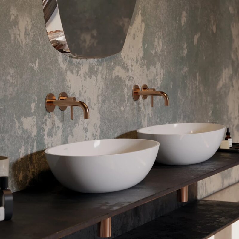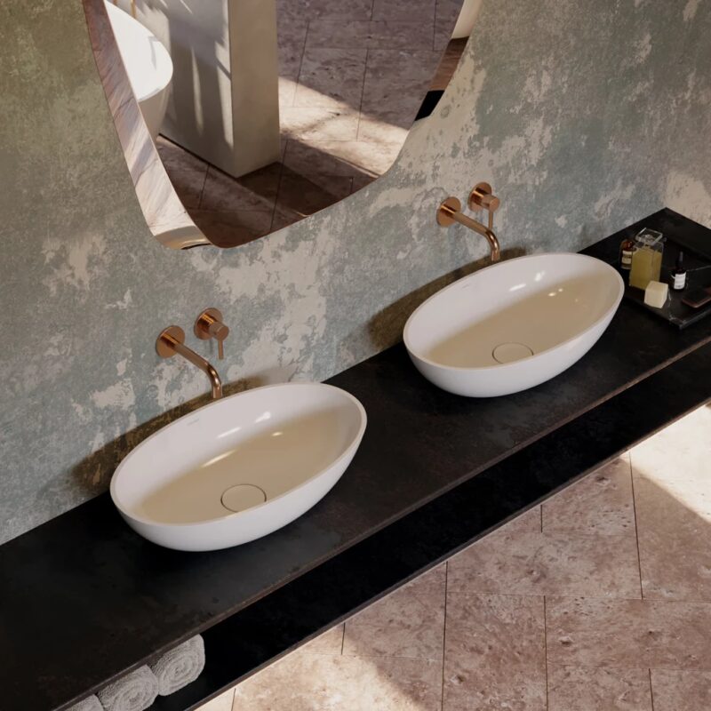 Umývadlo je vyrobené z kompozitného materiálu (M+), ktorého hlavnou zložkou je dolomit. Inovatívna výrobná technológia zaručuje dokonalé prevedenie každého detailu a zároveň zaisťuje mimoriadnu životnosť a odolnosť.
