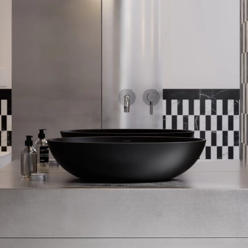 SHELL in black lava je umývadlo vo výraznom odtieni čiernej, so zamatovým, matným povrchom.