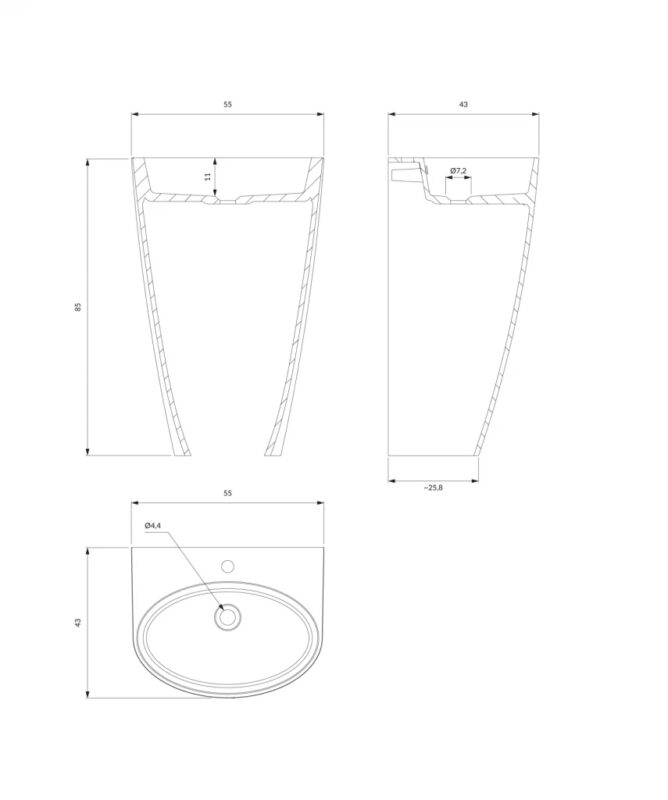 Voľne stojace umývadlo z kolekcie OMNIRES SIENA zaujme svojou monumentálnou siluetou. Zrezaný chrbát dokonale priľne k stene, vďaka čomu celá konštrukcia zaberie menej miesta. Umývadlo sa stane ústredným bodom kúpeľne a dodá interiéru osobitý charakter. Umývadlo je vyrobené z kompozitného materiálu (M+), ktorého hlavnou zložkou je dolomit. Inovatívna výrobná technológia zaručuje dokonalé prevedenie každého detailu a zároveň zaisťuje mimoriadnu životnosť a odolnosť. Lesklá čierna v kombinácii s klasickou bielou je originálna a výrazná povrchová úprava s lesklým povrchom. Dizajn: Janusz Langner, Štúdio OMNIRES dĺžka: 55 cm šírka: 43 cm výška: 85 cm nepretečeniu bez otvoru pre kohútik čistá hmotnosť: 28,16 kg celková hmotnosť: 31 kg bez umývadlovej zástrčky ( vybrať )(GT) Ean: 5902539823837