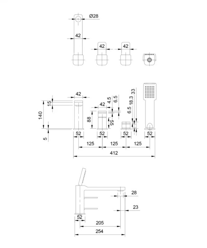 OMNIRES – SLIDE vaňová batéria 4-otvorová grafit /GR/ SL7732GR