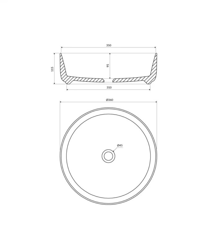 Umývadlo na dosku OMNIRES TULSA sa vyznačuje geometrickou siluetou vychádzajúcou z tvaru kruhu. Rovná hrana s úzkym okrajom a jemné zaoblenie pri základni dodávajú bloku ľahký a jemný tvar.